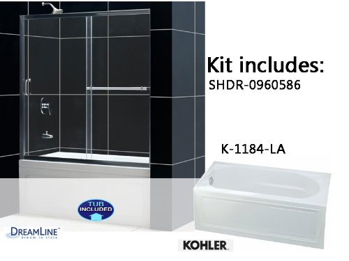 - Kit includes: INFINITY PLUS Tub Door SHDR-0960586 and Kohler Devonshire drop-in Tub K-1184-LA